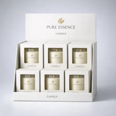 Refers to a packaging solution that is designed to present and promote the candles in an organized yet appealing way. Unlike regular cases, they are specifically designed to showcase the product, not for storing.