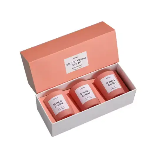 Tray and sleeve candle boxes are a premium type of packaging that consists of two parts: a sturdy inner tray that securely holds the candle, and an outer sleeve that slides over the tray. This structure offers enhanced protection, a sleek presentation, and an elevated unboxing experience. Often made from cardboard or kraft materials, the sleeve is customizable with branding elements like logos, colors, and artwork.