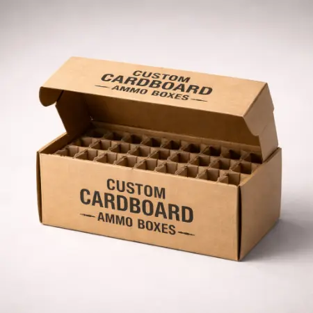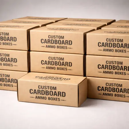A custom cardboard ammo box is a built in packaging solution, designed by using heavy paperboard or rigid cardboard. Boxes are designed precisely with die-cut and folded texture for structural integrity, these boxes are designed to hold and organize all quantities and calibers of ammunition. We use high end robust, high-density cardboard, including eco friendly and sustainable options for durability. Unlike packaging, our custom packaging boxes are designed for promotion; they are highly stackable, can handle load and feature fresh, high-quality printing for unique branding and caliber information, and are legally required for making. This strong combination ensures your product is secure, compliant, and recognizable.