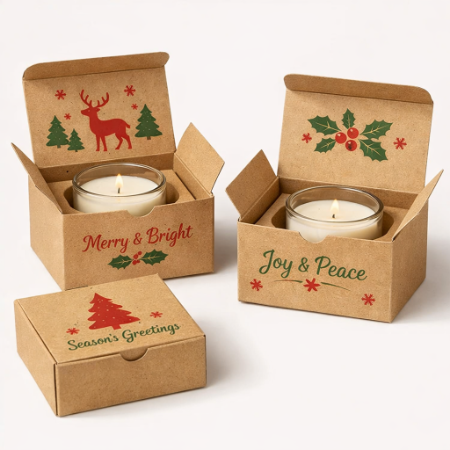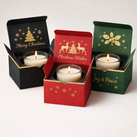 We offer packaging boxes that are exceptional in their presentation and protection. Our christmas boxes are beautifully designed with seasonal themes that make your candles instantly ready for gifting, ideal for customers buying candles as gifts for family, friends or colleagues, our boxes add a premium touch that turns your product into a thoughtful holiday present, also by choosing us you can add your logo, holiday message, or special design, custom printing helps your brand standout and creates a memorable unboxing experience during the busiest shopping season. Other benefits of these boxes are