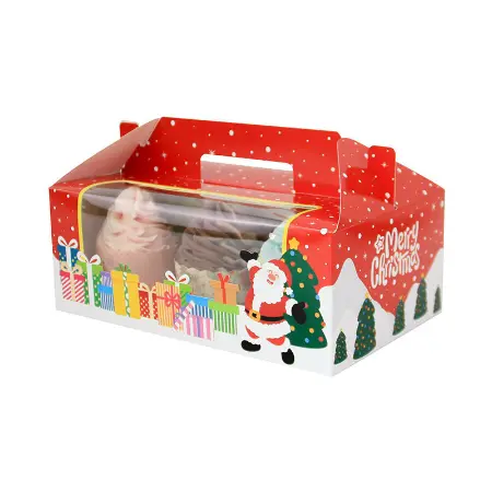 Refers to a container that is used to protect, hold, and present cupcakes during the holiday season. These packaging often features Christmas-related artwork, illustration, or even color to add a charm to the celebration.