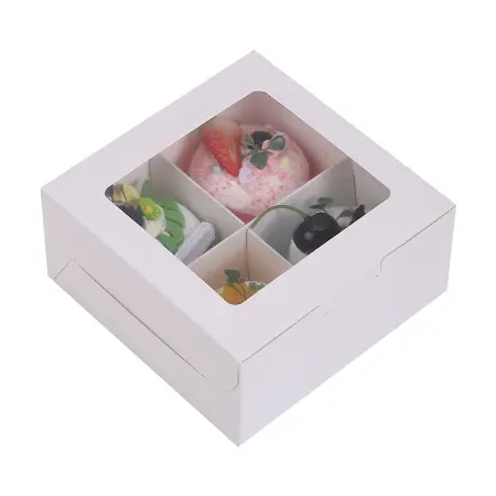 These dessert or muffin boxes are bakery boxes with a transparent window, typically made of clear plastic, that allows customers to see the contents inside without opening the box and are designed to showcase baked goods like cakes, pastries, cookies and other treats improving their appeal and potentially increasing sales.