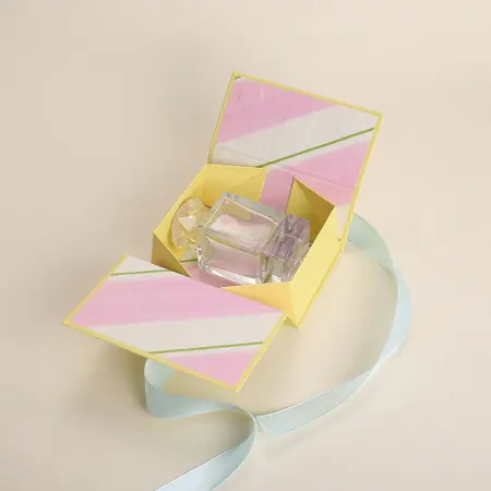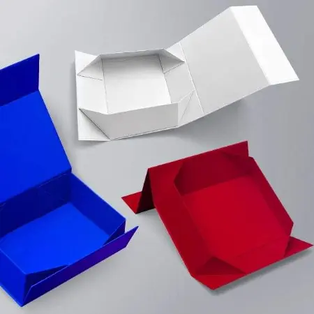 As the name implies, a container that features built-in magnetic flaps that securely close the case with a satisfying snap and is used for luxury gift packaging of versatile products. It often comes in a foldable design that can be shipped flat and assembled when needed. Foldable boxes help reduce the cost and space without compromising on the aesthetic presentation.
