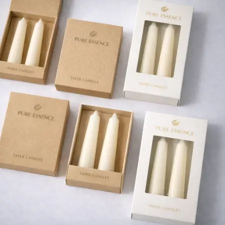 Our candle packaging is designed to combine protection, elegance and branding in one seamless solution. We use sturdy, high quality materials that prevent breakage, bending or wax damage during transit and storage, keeping your candles in perfect condition, each box is fully customizable to match your brands aesthetic with options for custom sizes, die-cut windows, inserts and luxurious finishes like stamping or embossing, also our packaging improves shelf appeal, supports brand recognition and delivers a memorable unboxing experience, choose us for packaging that protects your tapers and improves your brand, other benefits of our boxes are: