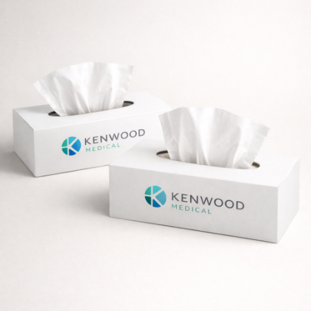 Refers to a specialized container designed to hold and dispense facial tissue or paper tissues. Its distinctive feature is a top opening for easy access to the content. Commonly made from cardboard material, as it is affordable and can be customized with multiple options.