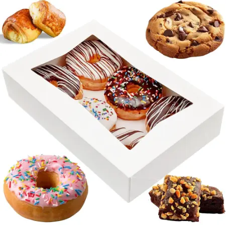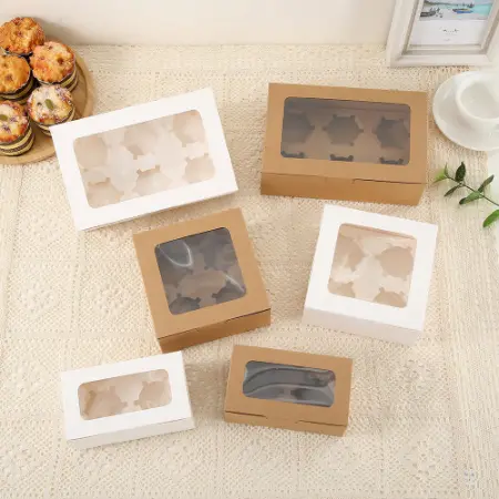 These window boxes are specialized containers, typically made of paperboard, designed to showcase baked goods while keeping them fresh and protected, they feature a transparent window, often made of acetate or polypropylene, that allows customers to see the product inside without opening the box, these boxes are commonly used in bakeries, cafes and for online sales to display and transport items like cakes, pastries and cupcakes.